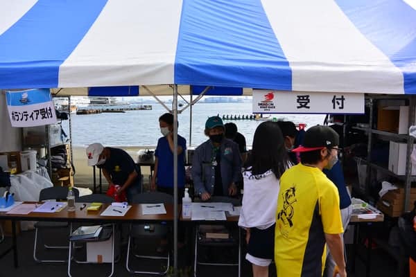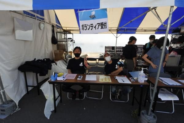 選手の受付・ボランティアの受付、参加賞の受け渡しなど