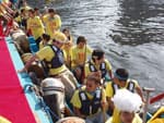 チーム全員が乗船、スタート位置へ向かいます。